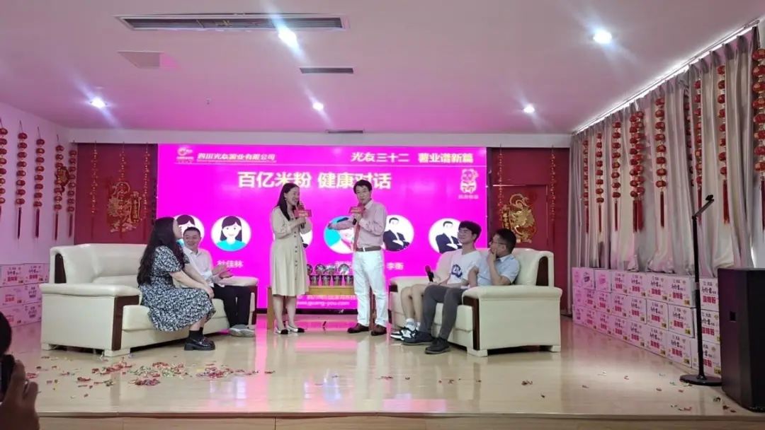 為更直觀地了解光友薯類健康主食,本次活動(dòng)還特別邀請五位嘉賓上臺與鄒光友董事長現(xiàn)場健康對話,對話的嘉賓分別是綿陽城市學(xué)院雙創(chuàng)中心主任李衡、綿陽市靖華節(jié)能環(huán)??萍级麻L王華、四川敬科智能裝備科技副總經(jīng)理肖飛雨、綿陽西城大學(xué)生創(chuàng)新創(chuàng)業(yè)園創(chuàng)業(yè)導(dǎo)師杜佳林、綿陽城市學(xué)院雙創(chuàng)中心何愛清,與會(huì)嘉賓在這里共同探討米粉行業(yè)的未來發(fā)展趨勢及健康飲食的重要性,共享基地帶動(dòng)大學(xué)生創(chuàng)新創(chuàng)業(yè)發(fā)展。