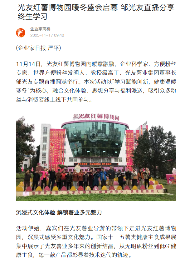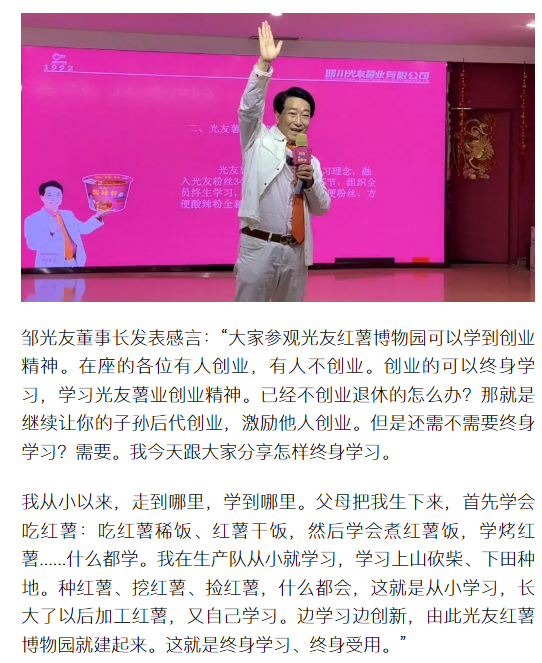 轉(zhuǎn)載搜狐網(wǎng)-光友紅薯博物園暖冬盛會啟幕 鄒光友直播分享終生學(xué)習(xí)