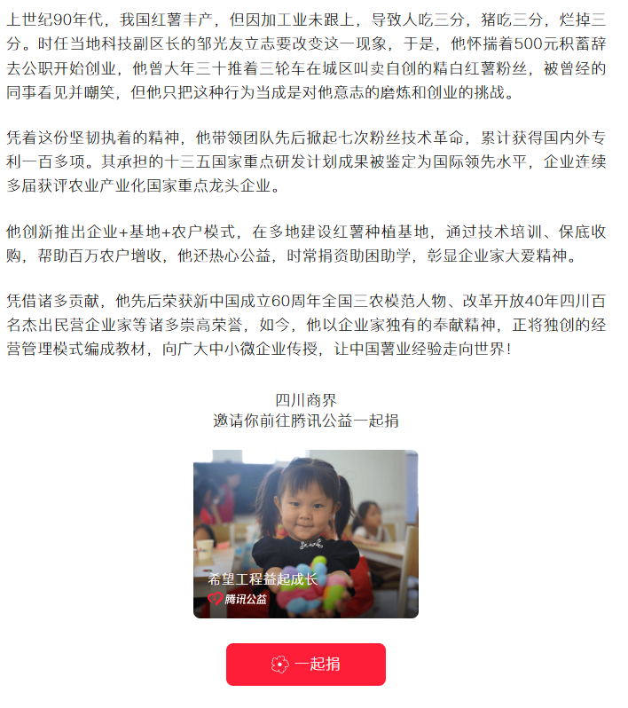 轉(zhuǎn)載四川商界網(wǎng) 四川商界人物|四川光友薯業(yè)集團(tuán)董事長(zhǎng)鄒光友