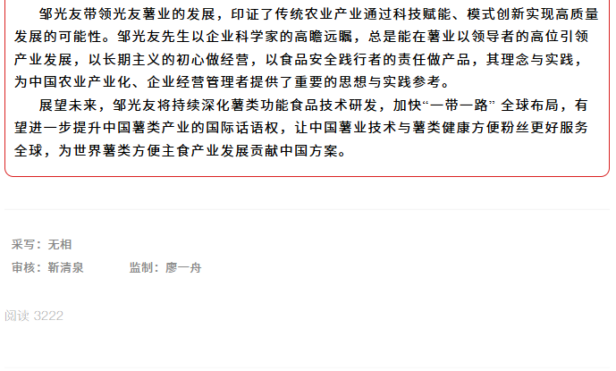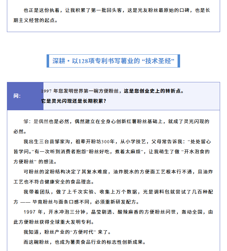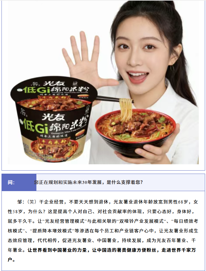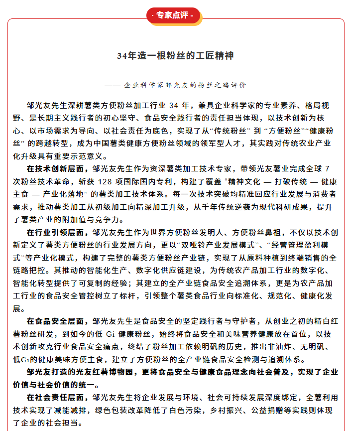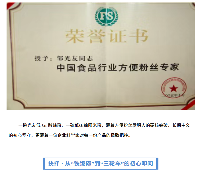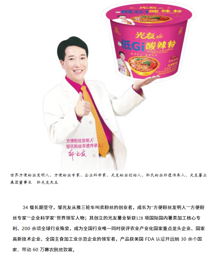 轉(zhuǎn)載綿陽(yáng)市企業(yè)聯(lián)合會(huì) 《領(lǐng)軍人才深度專(zhuān)訪》科技城企業(yè)英雄第八期 | 世界方便粉絲發(fā)明人的“中國(guó)傳奇”——專(zhuān)訪企業(yè)科學(xué)家、光友薯業(yè)集團(tuán)董事長(zhǎng)鄒光友先生