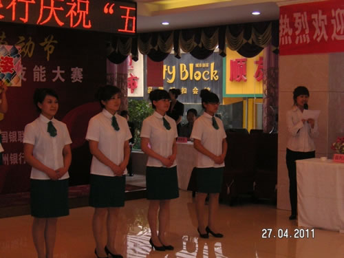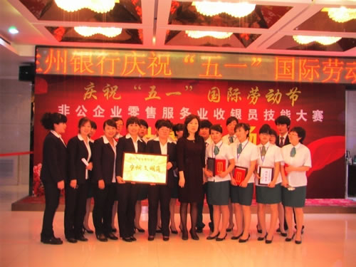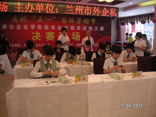 由蘭州市總工會(huì )主辦的“非公企業(yè)零售服務(wù)業(yè)收銀員技能比賽” 于2011年4月27日下午,在人民飯店落下帷幕。參加比賽的選手都是來(lái)自各公司和企業(yè)的業(yè)務(wù)尖兵,現場(chǎng)壓力重生,但是能和高手同臺競技是挑戰,也是幸運,大家都為榮譽(yù)而奮斗。比賽經(jīng)過(guò)單指單張、多指多張、機器點(diǎn)鈔、銀行卡刷卡、即問(wèn)即答、工裝展示環(huán)節近四個(gè)小時(shí)的比拼。最終國芳百貨收銀部取得了驕人的成績(jì),團隊授予“巾幗文明崗”,參賽的12名選手在單項成績(jì)中,兩人榮獲得一等獎、四人榮獲二等獎、四人榮獲三等獎、兩人榮獲優(yōu)秀獎。