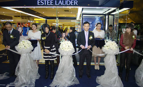 國芳百貨領(lǐng)導及雅詩(shī)蘭黛公司領(lǐng)導為雅詩(shī)蘭黛開(kāi)業(yè)剪彩