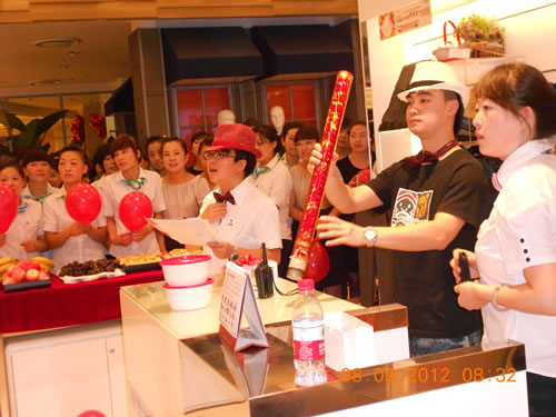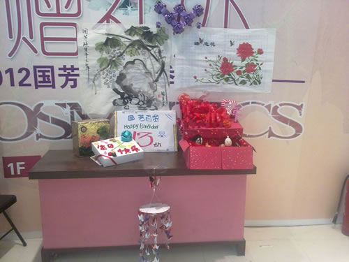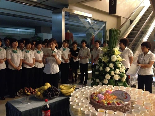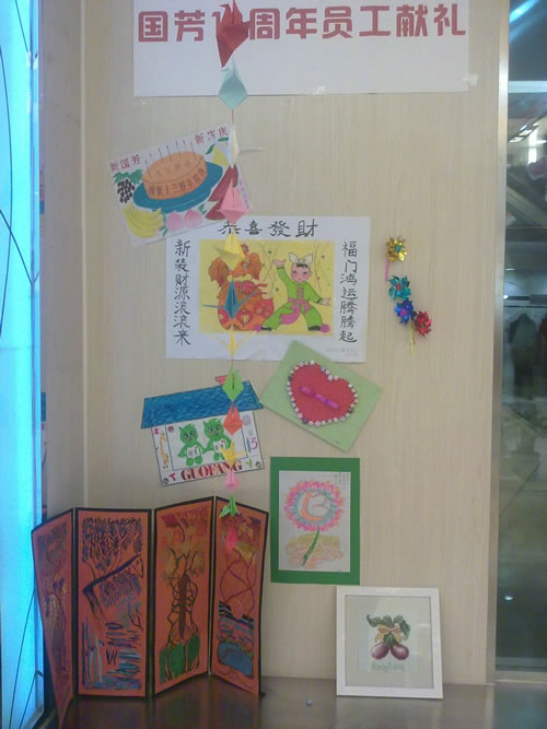 2012年9月8日,國芳集團蘭州零售各店、各部門(mén)迎來(lái)了13周年的店慶盛典,今年的店慶大晨會(huì )我們延續了以往冷餐會(huì )的形式來(lái)慶祝國芳零售的13歲生日。冷餐會(huì )中穿插了店慶宣誓、唱生日歌、切蛋糕等精彩環(huán)節,又增加了老員工店慶往事回顧和愛(ài)崗敬業(yè)案例分享,冷餐會(huì )最后全體管理人員以熱情的擁抱祝福了每一位員工,給大家帶去溫暖和祝福。值得一提的是今年新加入了“員工獻禮”環(huán)節,今年主要采取員工手工DIY的創(chuàng )意,讓大家動(dòng)手通過(guò)小工藝品和書(shū)畫(huà)等形式同工表達對國芳零售13周年店慶的祝福!并在店慶期間在賣(mài)場(chǎng)中間進(jìn)行了作品的展示,贏(yíng)得了員工和顧客的一致好評,給店慶增添了濃郁的人文色彩。