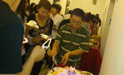 15、職能部門(mén)冷餐會(huì ),大家分享著(zhù)美味的蛋糕和甜點(diǎn)。