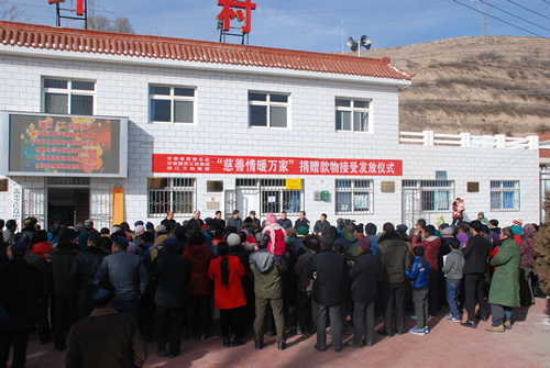 2016年1月21日由甘肅省慈善總會(huì )、甘肅國芳工貿集團聯(lián)合開(kāi)展的“慈善情暖萬(wàn)家”捐贈物資接受發(fā)放儀式在青嵐山鄉大坪村隆重舉行。省慈善總會(huì )常務(wù)副會(huì )長(cháng)張瑞堂同志、副會(huì )長(cháng)張忠健同志,甘肅國芳工貿集團副總經(jīng)理白海源先生,定西市政府副市長(cháng)李斌同志及市區民政局、青嵐山鄉政府主要負責同志參加了儀式。省慈善總會(huì )聯(lián)合國芳工貿集團籌措價(jià)值120萬(wàn)元的衣物5100多件,資助青嵐山鄉3000多戶(hù)困難群眾,幫助他們解決穿衣方面的困難。