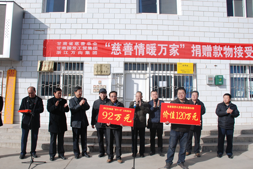 近年來(lái),甘肅國芳工貿集團在大力發(fā)展的同時(shí),始終沒(méi)有忘記對我區貧困群體的關(guān)愛(ài)和幫助,至今已累計對外捐贈現金物資達到5000余萬(wàn)元。有力地支援了我區救災工作和各項公益事業(yè)。這些善事、好事、實(shí)事,極大地彰顯了中華民族扶貧濟困、大愛(ài)無(wú)疆的傳統美德,體現了成功企業(yè)家的社會(huì )責任。