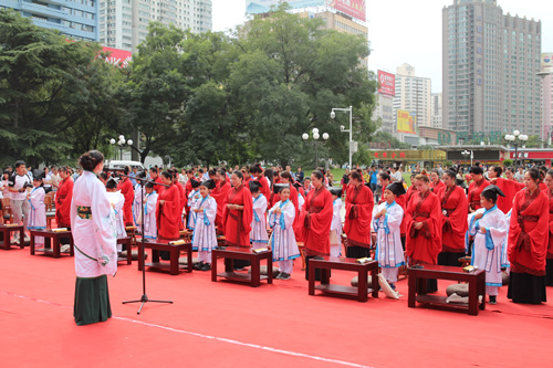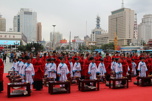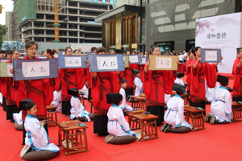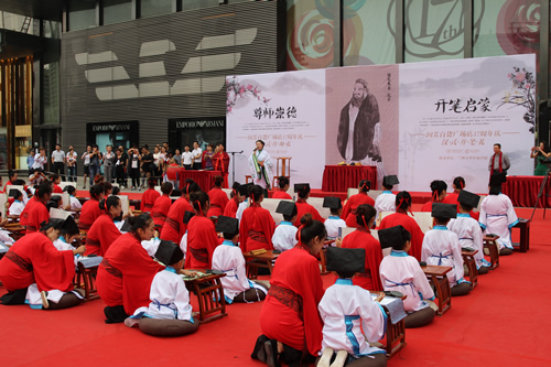 傳承中國文化,啟發(fā)學(xué)子奮發(fā)向上,再現古典禮儀之莊重恢弘。9月10日,國芳集團在東方紅廣場(chǎng)舉行大型漢式拜師禮開(kāi)筆禮儀式。本次活動(dòng)共招募40名6-9歲的學(xué)子參加。拜孔子、點(diǎn)朱砂、擊鼓明志,引眾多市民觀(guān)禮。