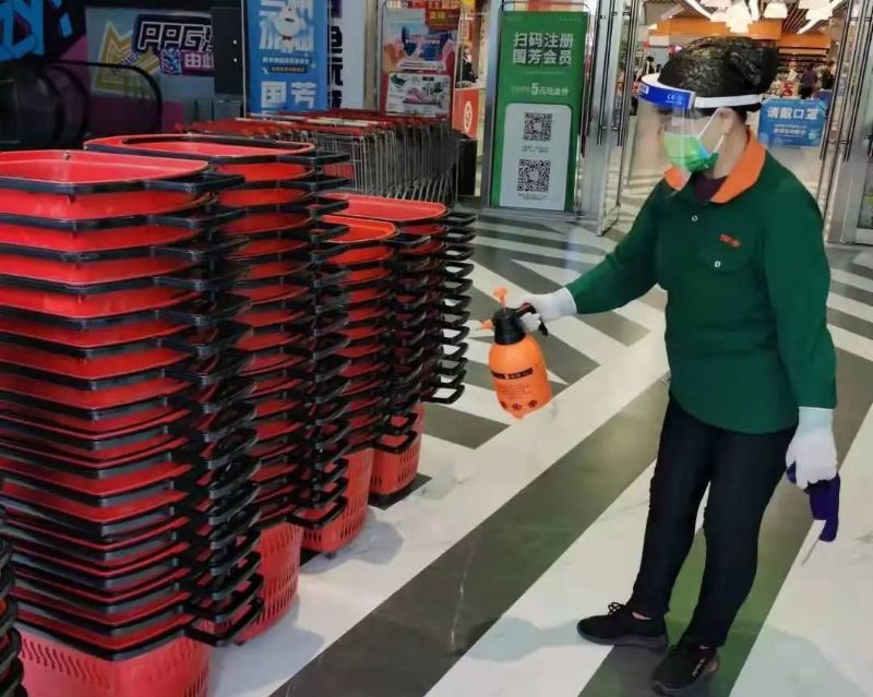 公司第一時(shí)間統計全體員工健康安全狀況,對商場(chǎng)外圍、各出入口進(jìn)行整體消殺;百貨、超市公共區域設施、電梯、衛生間等區域每?jì)尚r(shí)進(jìn)行消殺;開(kāi)啟商場(chǎng)新風(fēng)系統進(jìn)行空氣對流,并對空調系統進(jìn)行消殺,為顧客營(yíng)造安全放心的購物環(huán)境。