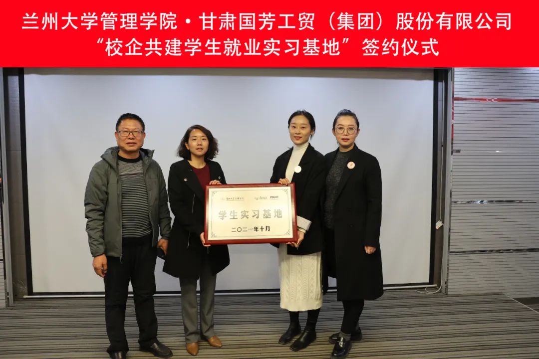 “校企合作,同道同行”,2021年10月15日上午,我司與蘭州大學(xué)管理學(xué)院舉行“校企共建學(xué)生就業(yè)實(shí)習基地”簽約儀式 ,在國芳寫(xiě)字樓十五樓會(huì )議室舉行。國芳集團總經(jīng)理張輝女士、國芳集團總裁助理、人力資源總監孟麗女士,蘭州大學(xué)管理學(xué)院黨委副書(shū)記李艷霞,蘭州大學(xué)管理學(xué)院團委書(shū)記魯靜,蘭州大學(xué)管理學(xué)院教師代表王懷詩(shī),蘭州大學(xué)管理學(xué)院校友秘書(shū)易芊汝,以及國芳集團員工代表們出席了簽約授牌儀式。