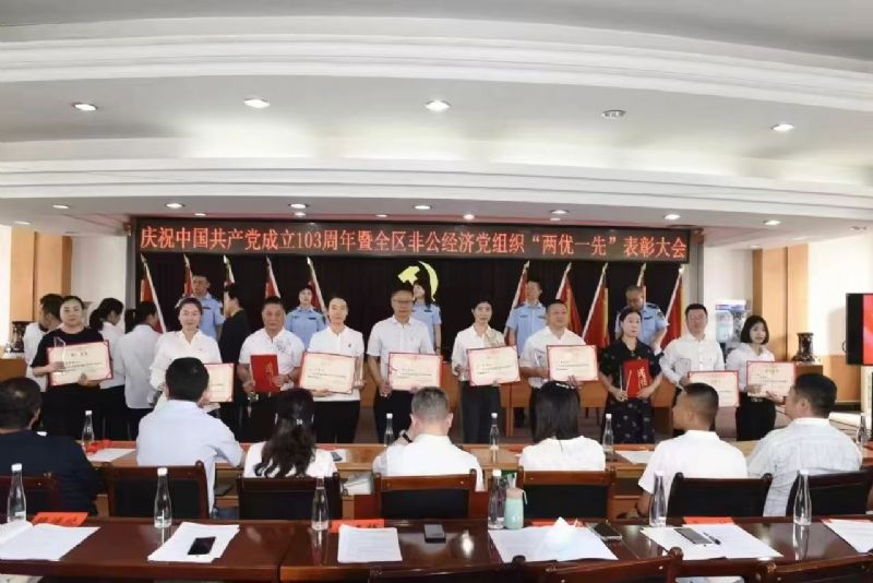 2024 年7月9日上午,“中共蘭州市城關(guān)區非公有制經(jīng)濟組織委員會(huì )紀念建黨 103 周年暨兩優(yōu)一先表彰大會(huì )”在城關(guān)區市場(chǎng)監督管理局十樓隆重召開(kāi)。