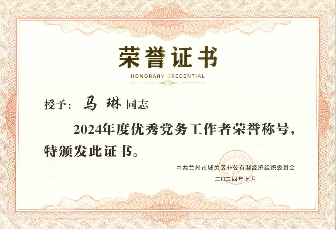 國芳集團在此次大會(huì )中表現出色。其中,黨委副書(shū)記馬琳憑借其在黨務(wù)工作中的杰出表現,被評為 2023 年—2024 年城關(guān)區優(yōu)秀黨務(wù)工作者。馬琳同志在工作中始終堅守職責,積極推動(dòng)黨組織建設,為集團的黨務(wù)工作做出了重要貢獻。